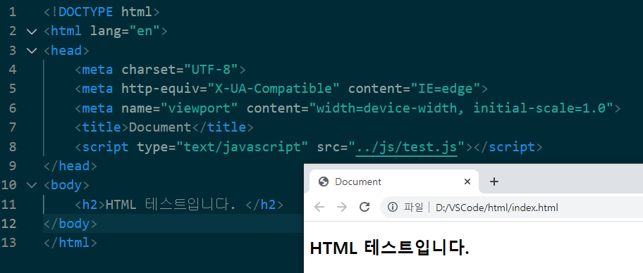 ▶ body에 작성한 요소 밑에 <script>태그를 사용하여 작성
