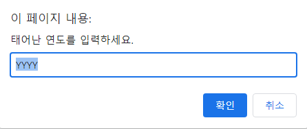 var birthYear = prompt("태어난 연도를 입력하세요.", "YYYY");